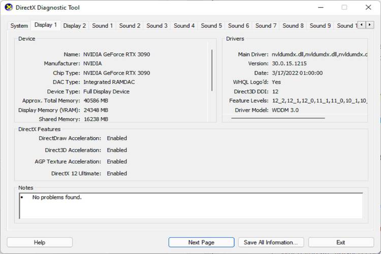 - Cliquez sur « affichage 1 » et recherchez DirectX 12 Ultimate là-bas